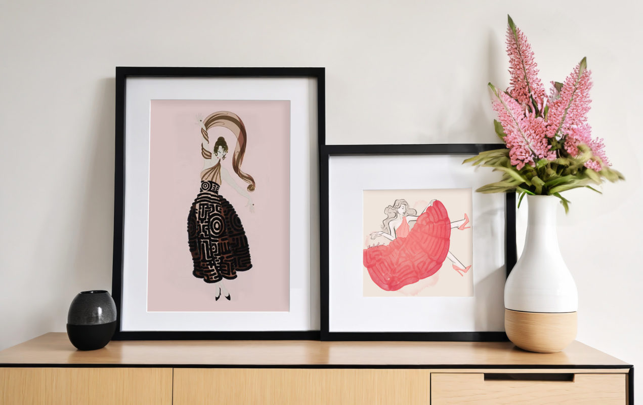 The gold details of the black coat in Erté’s “Loge de Théâtre” 1984 took my eye straight away, I suppose of how extravagant these details were; this luxurious black coat was destined to be the centre of attention. Created in a few fast strokes with two watercolour brushes in Procreate and detailed with a […]