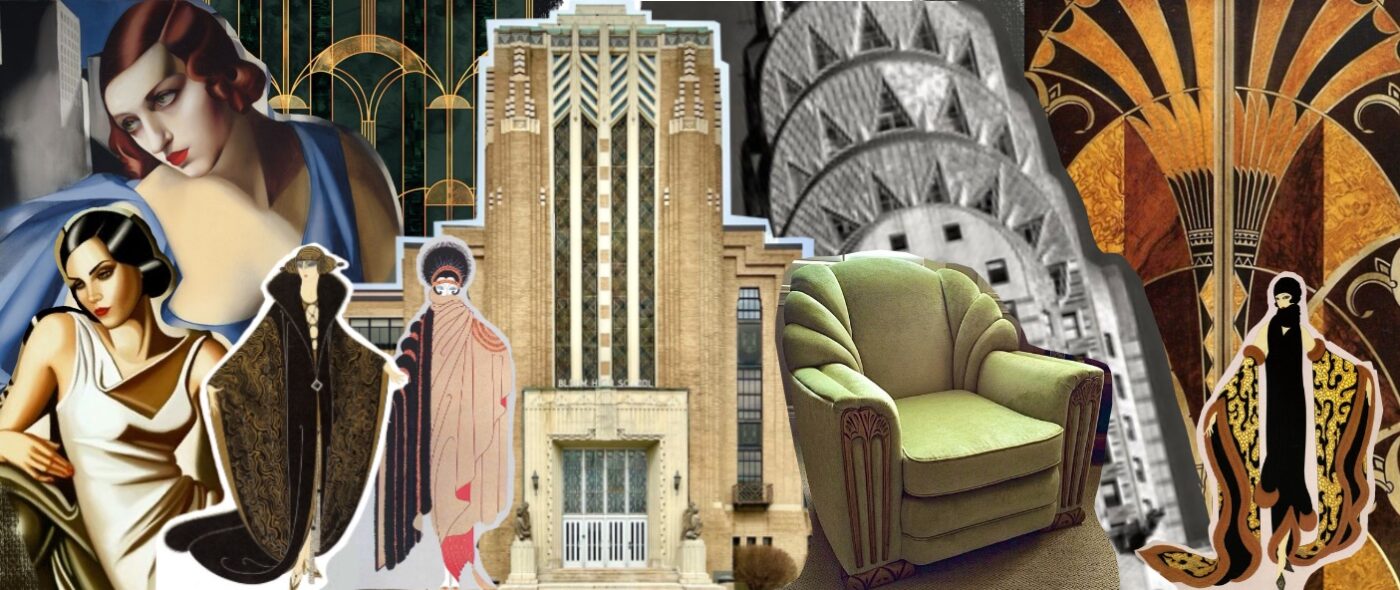 - Characteristics: Art Deco featured bold geometric shapes, rich colors, and lavish ornamentation, drawing inspiration from various sources such as Cubism, ancient Egyptian art, and industrial design. The style was applied to a wide range of media, including painting, sculpture, architecture, and decorative arts.
